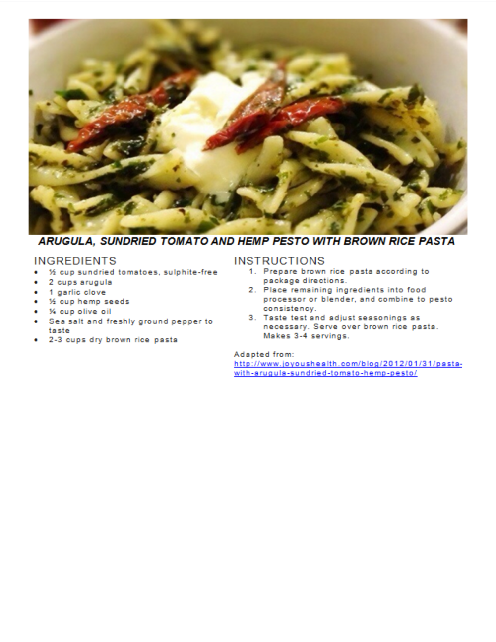 Recipes Arugula, Sundried Tomato and Hemp Pesto with Brown Rice Pasta Posted by Janet McKenzie, ND on May 14, 2018May 17, 2018 arugula, sundried tomato, hemp seeds, pasta, pesto Related