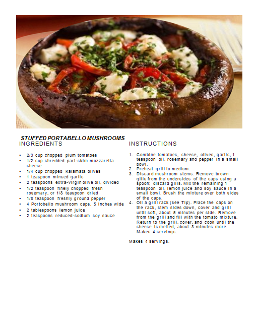 Recipes Stuffed Portabello Mushrooms Posted by Janet McKenzie, ND on May 28, 2018June 13, 2018 portabello mushrooms, plum tomatoes, kalamata olives, mozzarella cheese Related