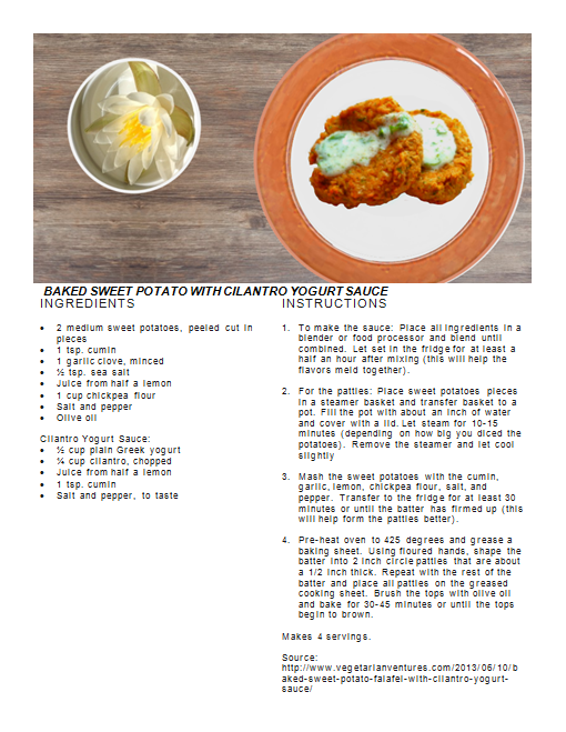Recipes Baked Sweet Potato Falafel with Cilantro Yogurt Posted by Janet McKenzie, ND on June 12, 2018June 13, 2018 sweet potato, Greek yogurt, cilantro, cumin Related