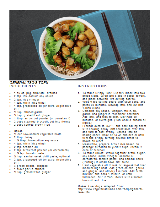 Recipes General Tso’s Tofu Posted by Janet McKenzie, ND on July 13, 2018 tofu, broccoli, brown rice, green onion, chilies Related