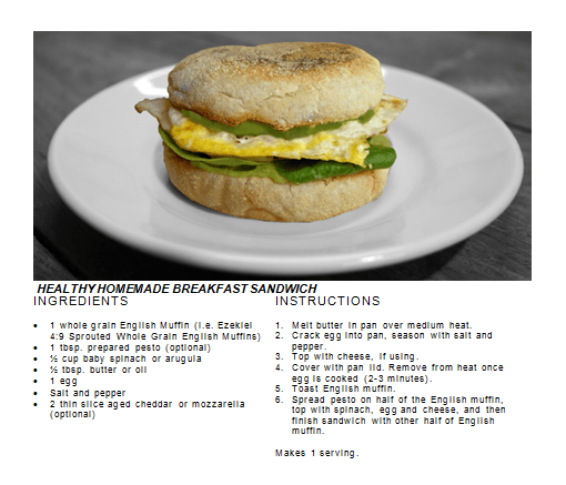 Although the homemade version provides more calories than a McMuffin, it will keep you feeling full longer and also gives you double the amount of vitamin A, 25% more calcium and some vitamin C. And it tastes good!