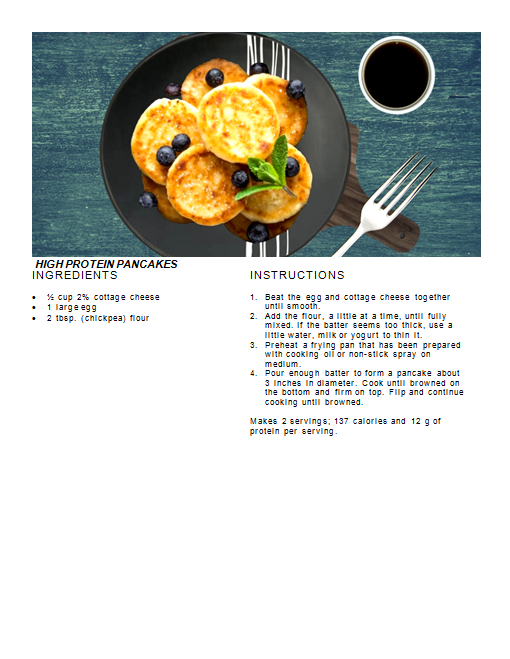 Recipes High Protein Pancakes Posted by Janet McKenzie, ND on July 17, 2018December 20, 2018 cottage cheese, eggs, flour Related