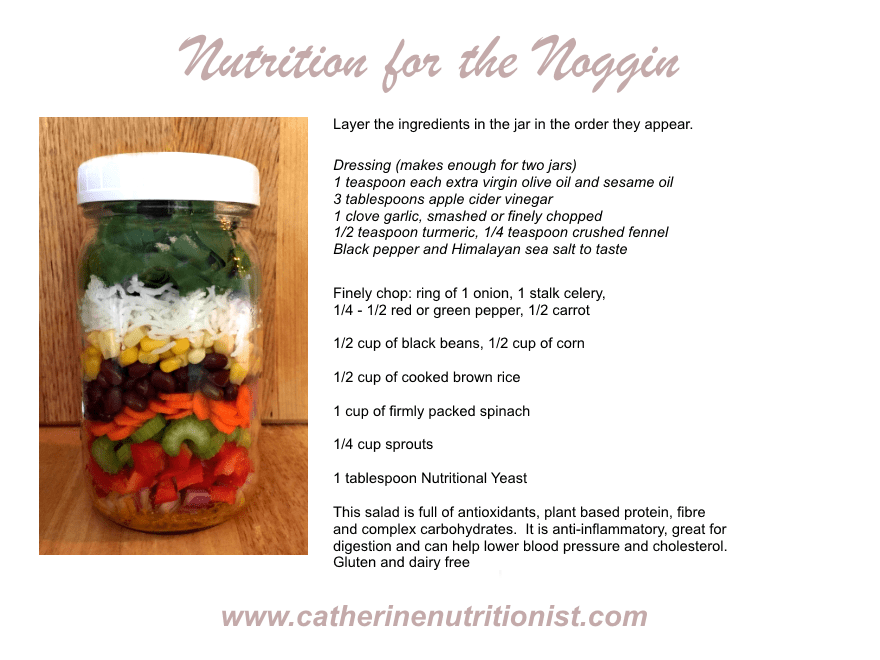 This delicious salad-in-a-jar recipe is provided courtesy of Catherine Roe, Registered Holistic Nutritionist. You’ll find more from Catherine here: