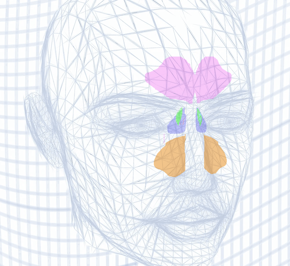 The sinuses are hollow areas in the skull. There are four pairs of them located on the forehead, between the eyes and on either side of the bridge of the nose. These areas are lined with mucosal tissues. When the tissues become inflamed or infected, they swell, resulting in pain from the pressure of the swelling.